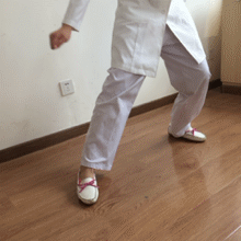 第8个动作刺激到的是曲池、尺泽、曲泽等穴位,有降压、止咳等效果。