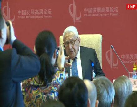 在今日举行的中国发展高层论坛2016年年会分组会上,美国前国务卿基辛格与原国务委员戴秉国对话,畅谈中美两国关系及未来发展趋势。