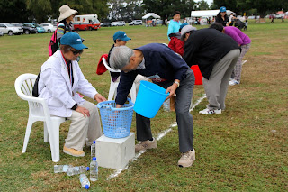 他们饶有兴味地参加了一人项目“套圈比赛”;二人项目“投球比赛”;集体项目“颗粒归仓接力赛”、“倒立矿泉水瓶子接力赛”、“定点投篮接力赛”。